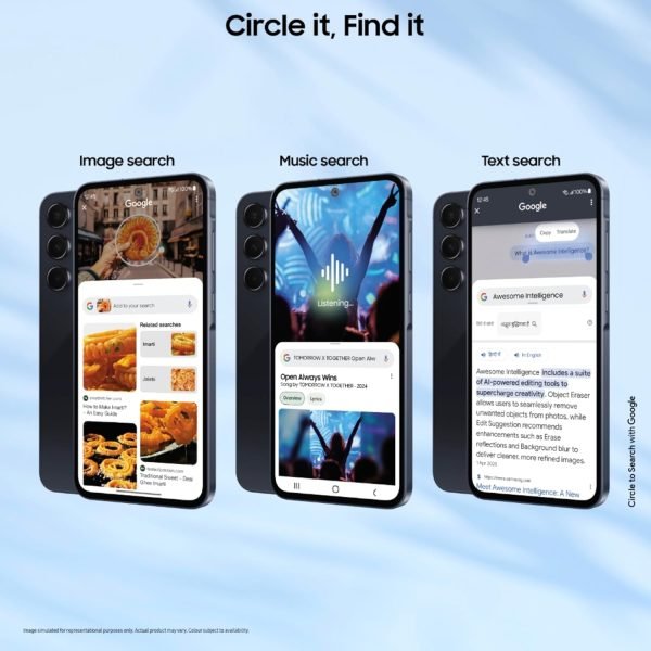 AI Enhancements – Circle to search – Music, Image or text. Enhance your photos with Camera enhanced by AI and Intelligent visual editing – Object eraser. Image remaster. AI edit suggestions.