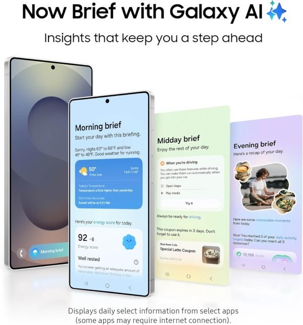 ¹Compatible with select apps. Requires Google Gemini account. Results may vary based on input; check responses for accuracy. ²Displays daily select information from select apps (some apps may require internet connection). ³Compatible with common video formats accessible in Gallery; helps minimize six sounds (Voice/speech, Music, Noise, Crowd, Nature, Wind). Utilizes AI; results vary. ⁴As compared to Galaxy S24 Ultra. ⁵Requires screen resolution setting to QHD+. ⁶Galaxy AI features track data and require a compatible Galaxy wearable device (sold separately), Samsung Health app and Samsung account. ⁹Galaxy AI features track data and require a compatible Galaxy wearable device (sold separately), Samsung Health app and Samsung account. ¹⁰Galaxy AI features by Samsung are free through 2025 and require Samsung account login.
