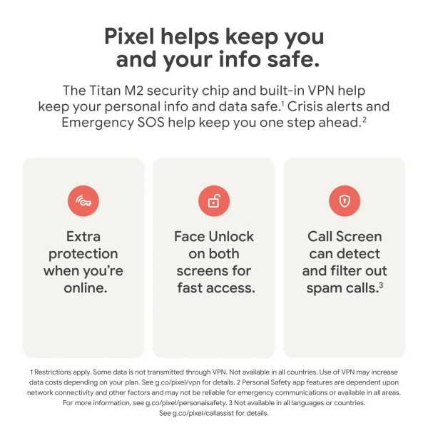 Your new Pixel comes with seven years of OS and security updates, and new and upgraded features with Pixel Drops from launch.10